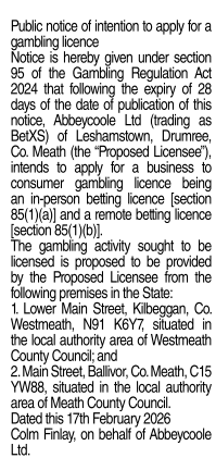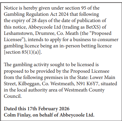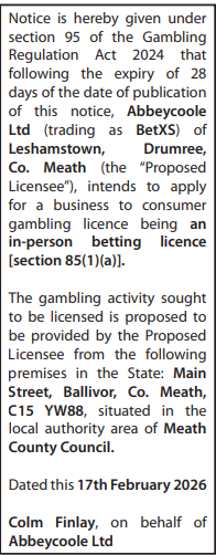 Publication Name:Â Meath Chronicle, Westmeath Examiner, Irish Daily Mail