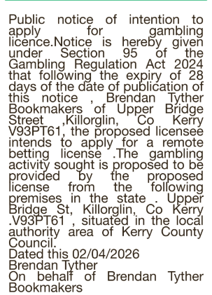 Brendan Tyther Bookmakers 08 Apr 26 Operator: Brendan Tyther BookmakersDate of Publication: 02/04/2026Publication Name: The Irish IndependentLicence Type (s): Remote Betting Related Content