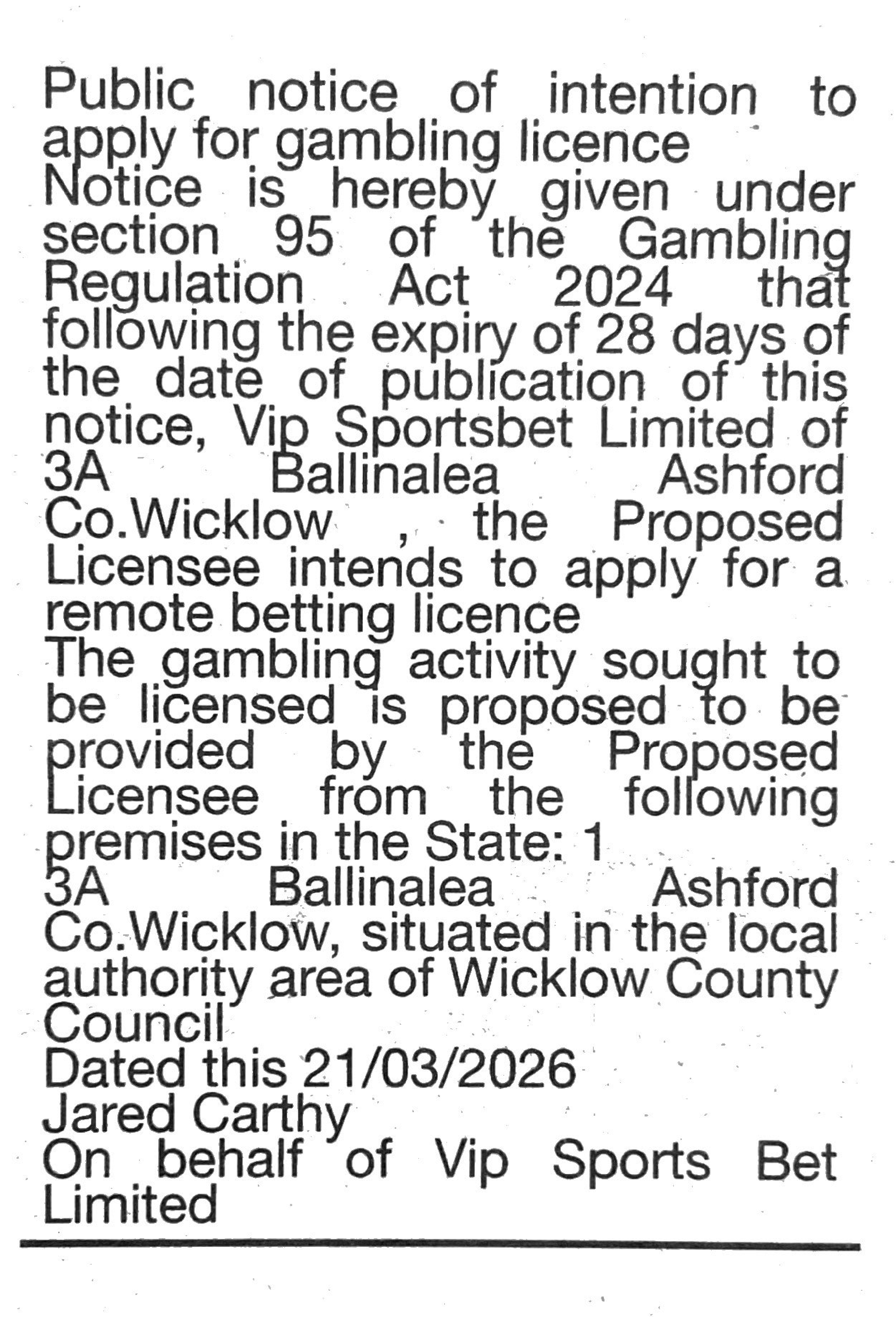 Vip Sportsbet Limited 25 Mar 26 Operator: Vip Sportsbet LimitedDate of Publication: 25/03/2026Publication Name: The HeraldLicence Type (s): Remote Betting Related Content